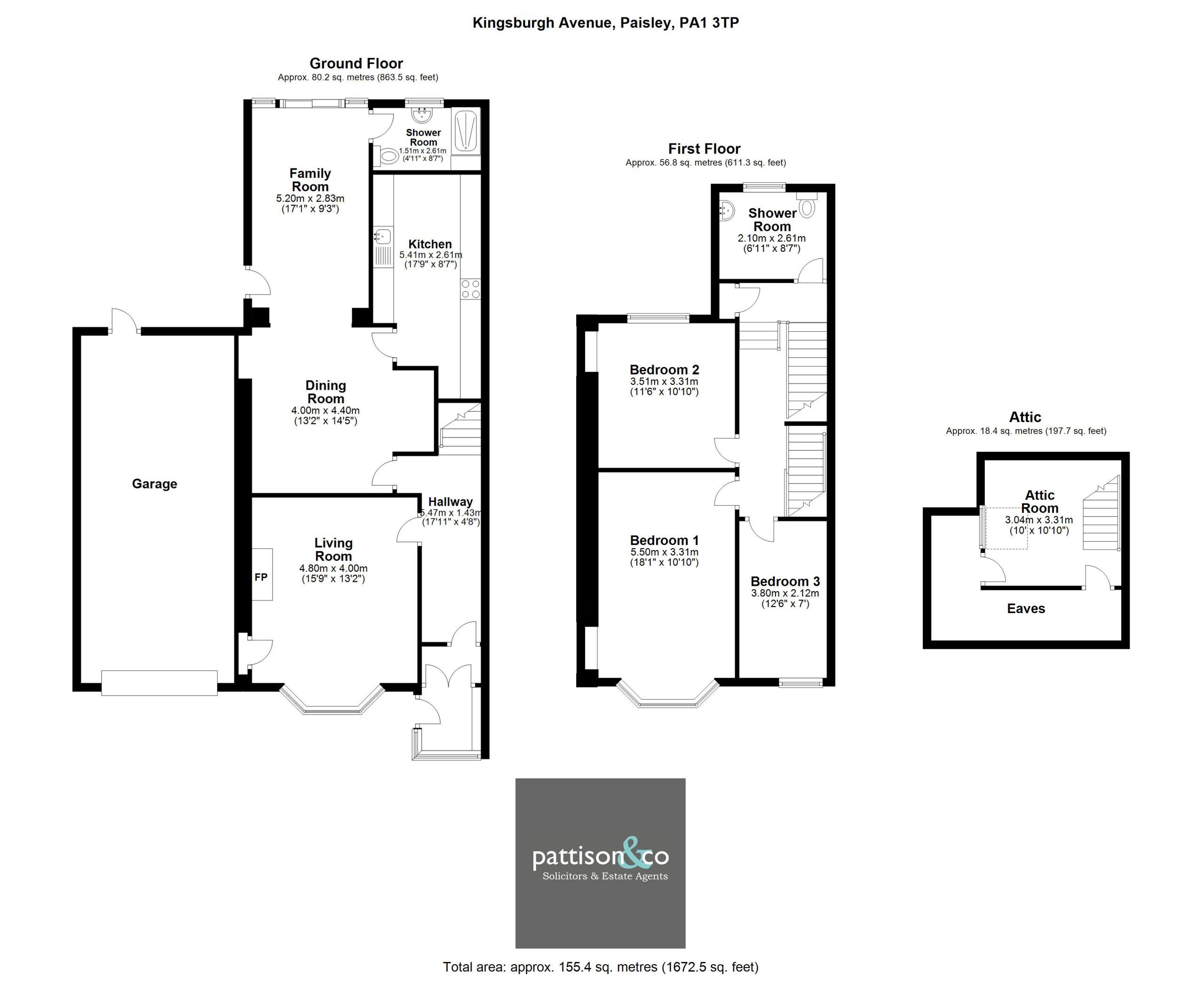 This expansive semi-detached 3 bed villa is presented to market in ever popular Paisley area. The property enters by a welcoming vestibule in to the ground floor hallway. To the left, you will find a generously sized living room with feature bay windows and ceiling rose. To the rear of the property lies the open plan dining room / family room. The dining room provides space aplenty for a large dining table and chairs, and leads in to the modern kitchen. The kitchen benefits from wall and floor mounted white gloss cabinetry and integrated appliances, with anthracite sink, with a bonus pantry room sitting off. The recently constructed family room benefits from a rain-sensitive electronic velux skylight for maximum light exposure and patio doors lead to the rear garden, and set off from the family room is a modern shower room with WC. Upstairs, there are 3 well sized bedrooms. The master bedroom is front facing and also includes feature bay window. Bedrooms 2 and 3 provide space for a double bed and storage required. The family bathroom is accessed via a half landing and includes half height contemporary tiling to surround the shower and WC. An added bonus space is also available within this property accessed off sliding doors on the main landing upstairs. These stairs lead to an attic space which has been floored and lined by the current owners and is currently used as a workshop space, but includes also space within the eaves for storage. Externally, the spacious rear garden offers a wooden shed for storage and second wooden outdoor space currently used as a bar area. There are also 2 paved seating areas to enjoy the summer sun. The garage to the side of the property is in use, and the current owners have converted the rear portion of the garage to form a fully functional sauna. The property specification includes double glazing, private driveway and gas central heating. The property is a just a short walk from the tranquil gardens of Barshaw Park, and bustling Glasgow Road where you will find all usual amenities such as shops, restaurants and bars. Paisley's Town Centre is also just a short distance, and the nearby M8 motorway network connects the property to the central belt of Glasgow with ease.