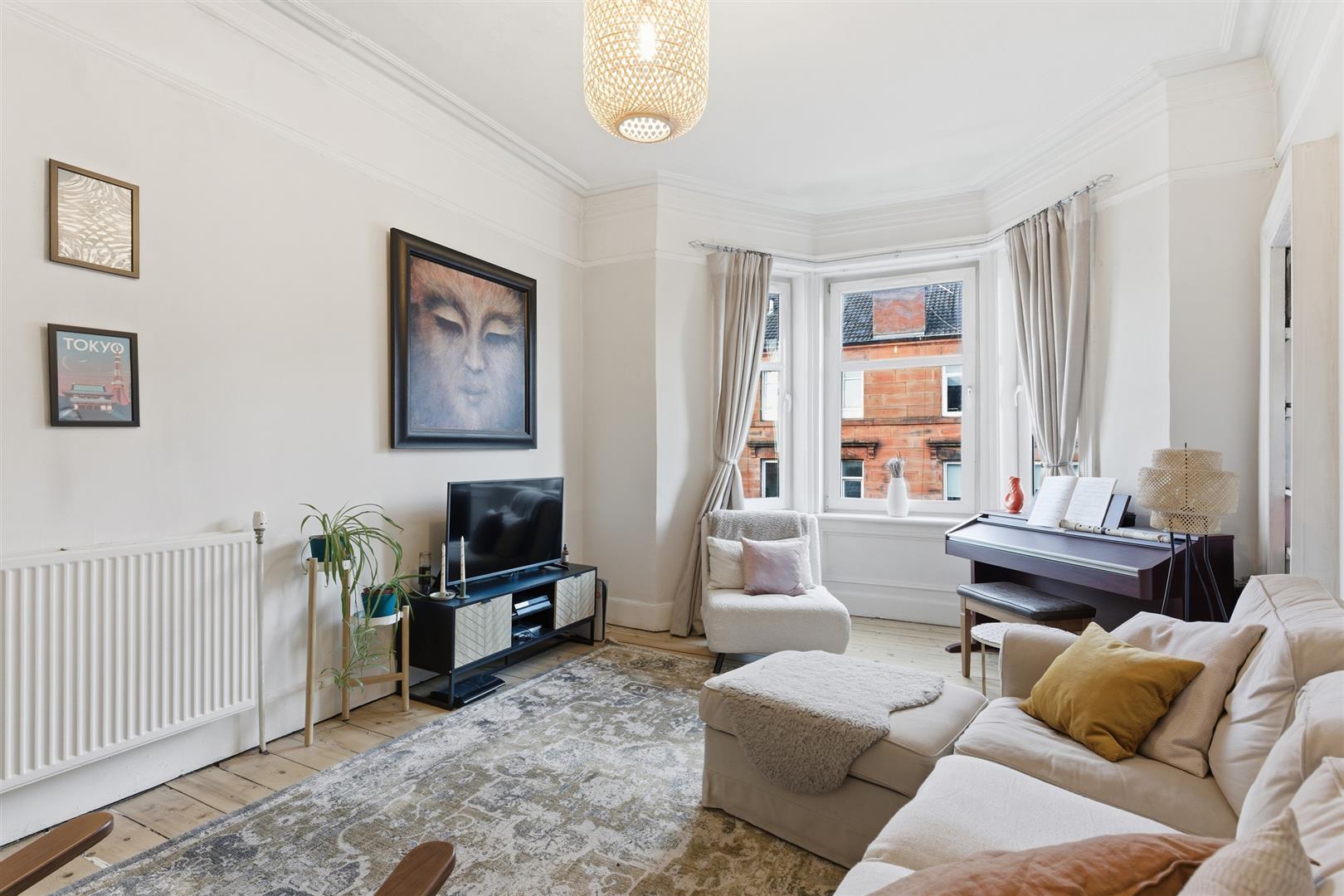 Nestled in the heart of Glasgow’s famous West End, this charming one-bedroom flat offers a delightful blend of comfort and convenience. Situated on the third floor of a classic red sandstone tenement block, this property boasts a generous 688 square feet of living space, making it an ideal choice for individuals or couples seeking a cosy home. Upon entering, you are welcomed into a spacious living room that features a lovely bay window, allowing natural light to flood the space and create a warm atmosphere. The kitchen is well-equipped with both wall shelving and floor cabinets, providing ample storage, and it also offers enough room for a dining area, perfect for entertaining guests or enjoying a quiet meal at home. The bedroom is generously sized, ensuring a restful retreat, while the bathroom is also of good proportions, catering to your daily needs. The property benefits from a secure common entry, providing peace of mind, and on-street parking is available for residents. Laurel Street is conveniently located, offering easy access to a variety of local amenities, including shops, cafes, and parks. The vibrant atmosphere of Glasgow is just a stone's throw away, with excellent transport links that connect you to the city centre and beyond. This flat presents a wonderful opportunity to enjoy the charm of Glasgow living in a well-maintained and characterful building. Whether you are a first-time buyer or looking to invest, this property is not to be missed.